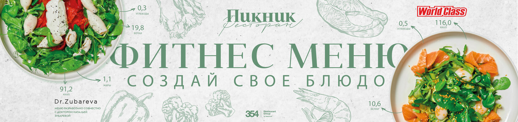 Ресторан «Пикник» (354 Restaurant Group by Vasilchuki) совместно с диетологами сети фитнес-клубов премиум-класса World Class и известным доктором Натальей Зубаревой представляют меню для тех, кто придерживается принципов правильного питания.